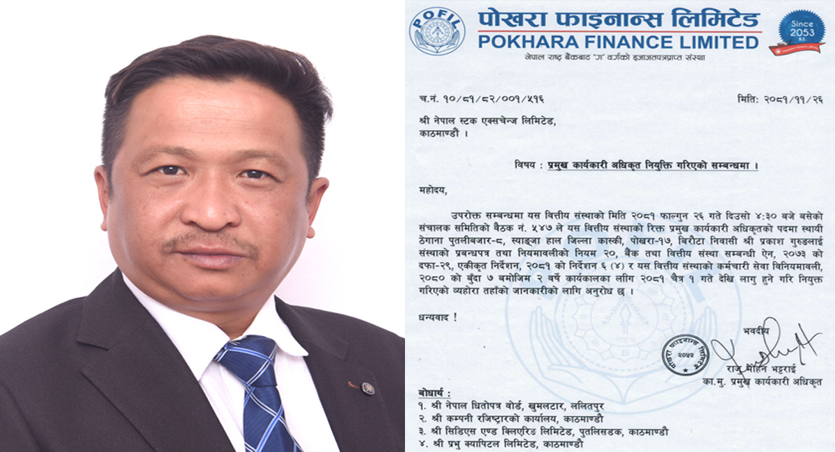 पोखरा फाइनान्सको सीईओमा प्रकाश गुरुङ नियुक्त