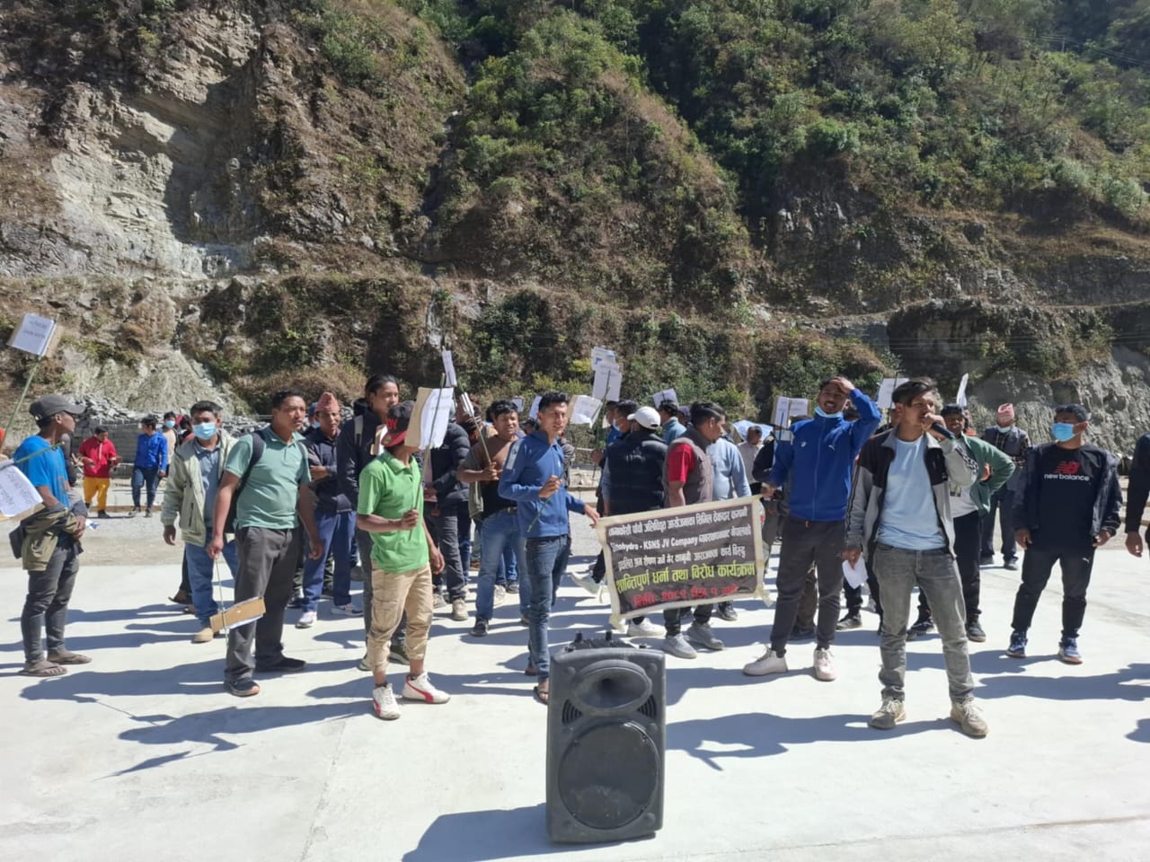 तामाकोशी पाँचौंमा तनाव: कामकाज ठप्प पार्दै चरणबद्ध आन्दोलनमा उत्रिए श्रमिकहरू