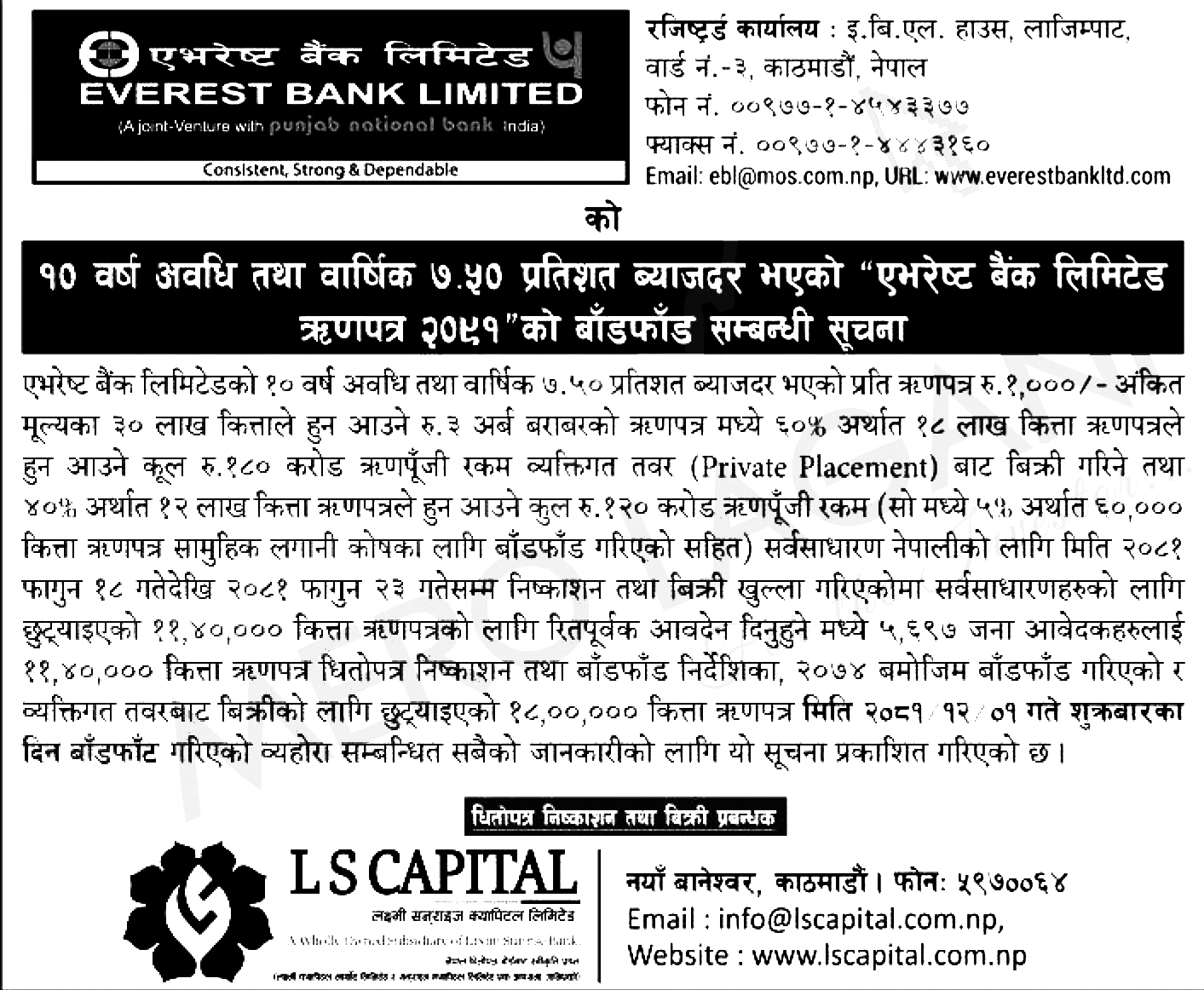 एभरेष्ट बैंकको ऋणपत्र ५ हजार ६९७ जनालाई बाँडफाँड