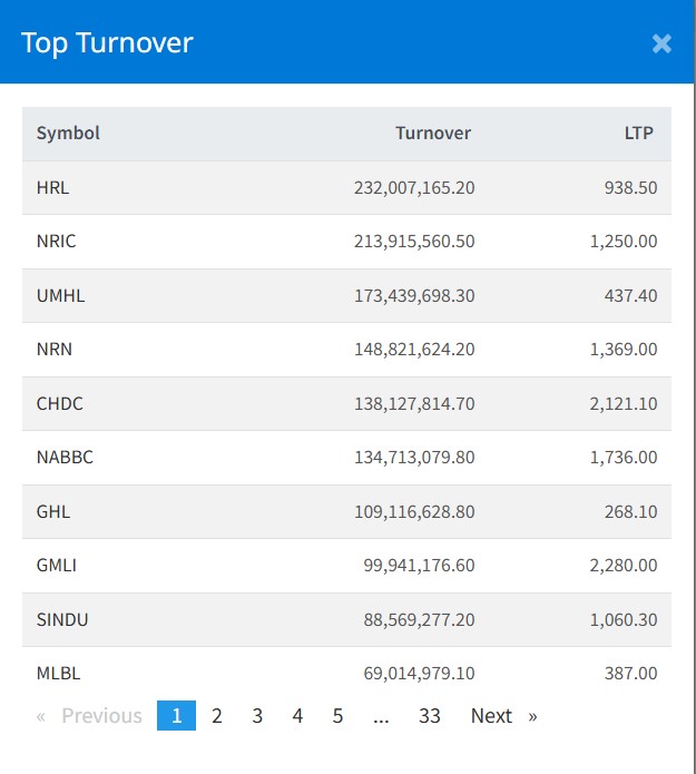 साथै, नेपाल रि इन्स्योरेन्सको २० करोड ६२ लाख रुपैयाँ, युनाइटेड मोदी हाइड्रोपावरको १७ करोड ११ लाख रुपैयाँ, एनआरएन इन्फ्रास्टक्चरको १४ करोड रुपैयाँको शेयर कारोबार भएको छ ।