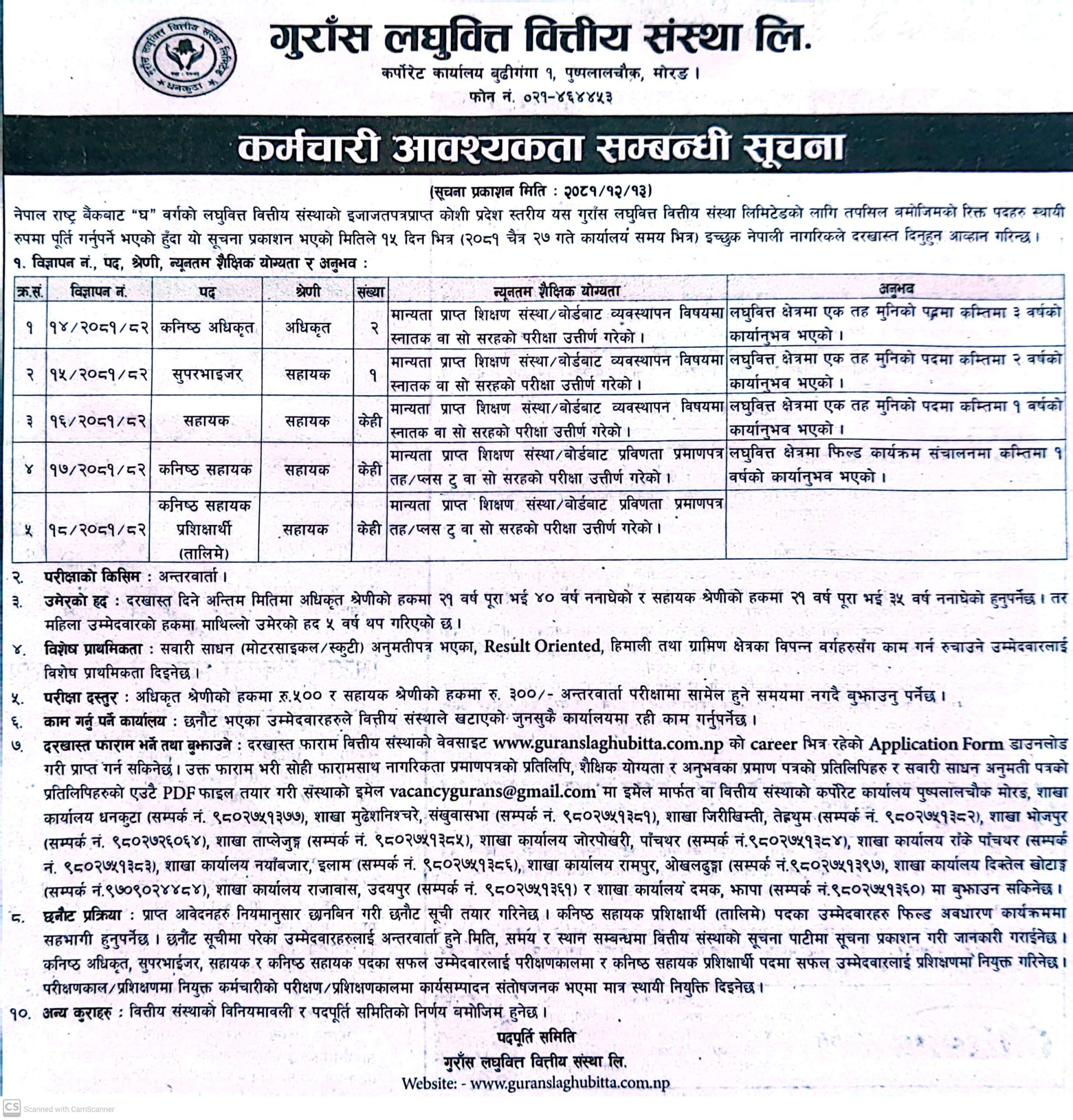 गुराँस लघुवित्तमा कर्मचारी माग, कति चाहिन्छ योग्यता?
