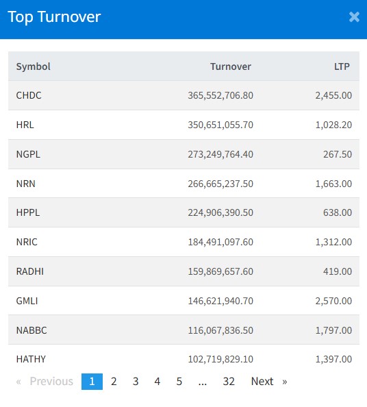 त्यस्तै, हिमालयन रि इन्स्योरेन्सको ३५ करोड ६ लाख रुपैयाँ, ङादी ग्रुप पावरको २७ करोड ३२ लाख रुपैयाँ, एनआरएन इन्फ्रास्टक्चरको २६ करोड ६६ लाख रुपैयाँको कारोबार भएको छ ।