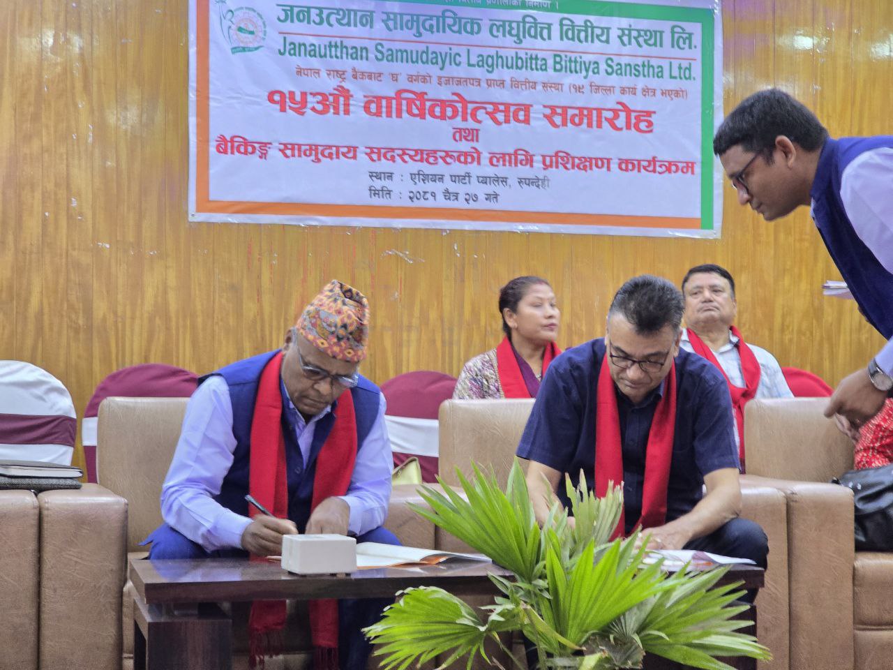 काठमाडौँ ।  जनउत्थान सामुदायिक लघुवित्त वित्तीय संस्था लिमिटेडले चैत्र २७ गते संस्थाको स्थापना दिवसको अवसरमा १५औं वार्षिकोत्सव विभिन्न कार्यक्रमहरू आयोजना गरी मनाएको छ। संस्थाको बुटवल शाखाको आयोजनामा एसियन पार्टी प्यालेस, बुटवलमा सम्पन्न समारोह तथा बैंकिङ्ग समुदाय सदस्यहरूको लागि आयोजित प्रशिक्षण कार्यक्रमको अध्यक्षता सञ्चालक समितिका अध्यक्ष डा. मान बहादुर विश्वकर्माले गरेका थिए।