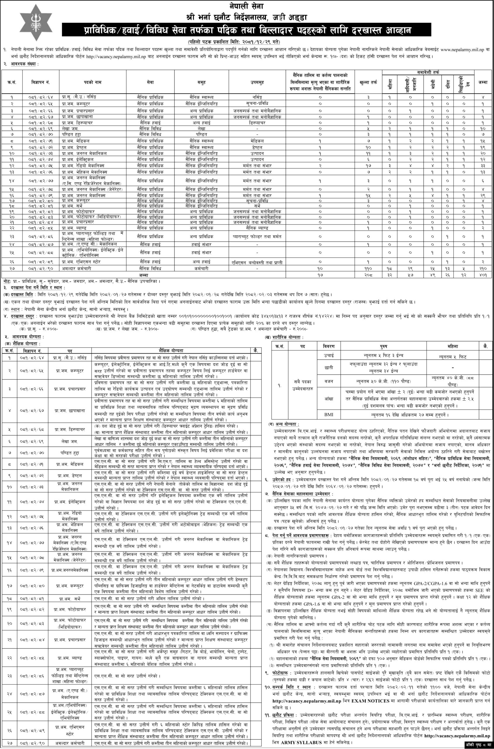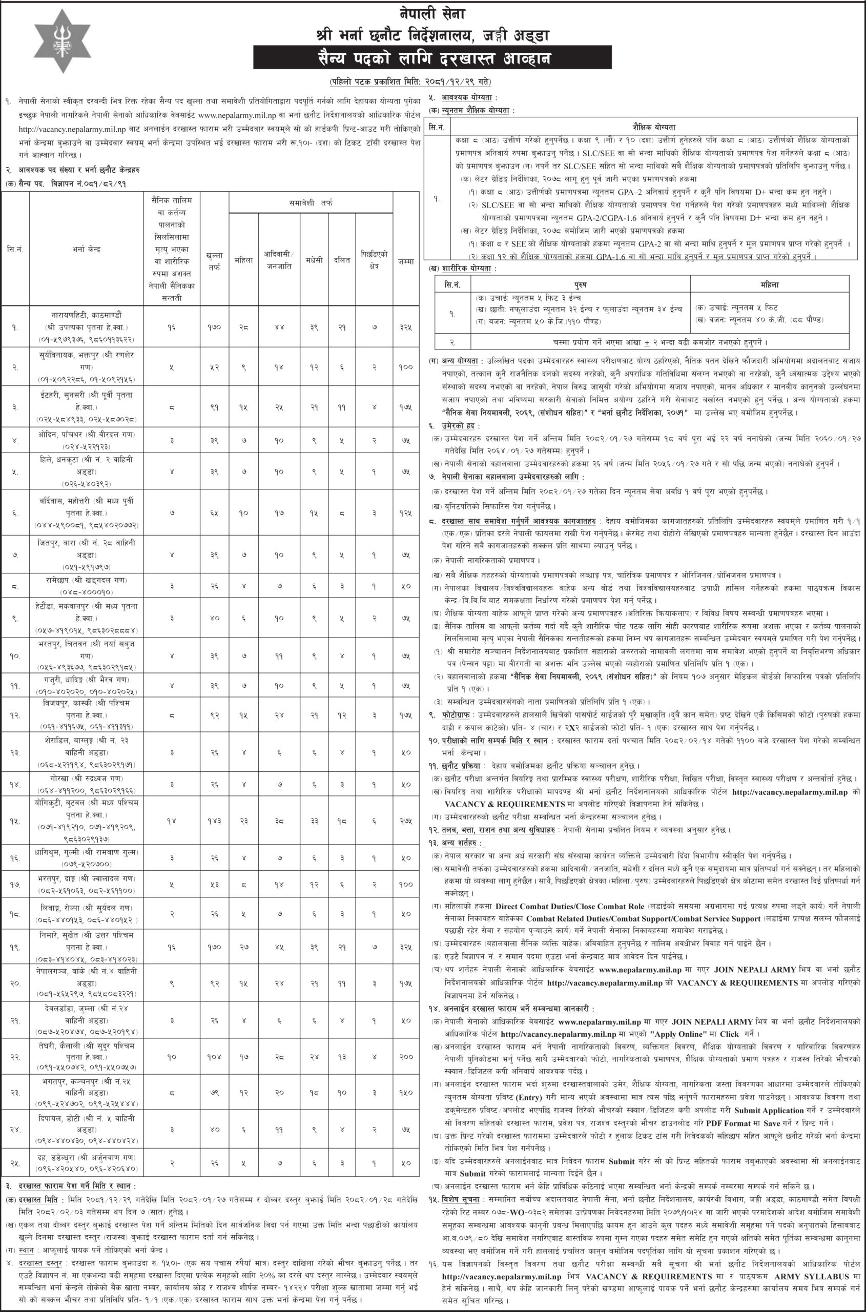 सेनाले उपत्यका पृतना हेडक्वाटर समेत विभिन्न स्थानका गण, वाहिनी अड्डा, पृतना, गुल्म लगायत प्राविधिक/हवाई/विविध सेवातर्फका पदिक तथा बिल्लादार पदहरूका लागि समेत आवेदन खुलाएको हो।