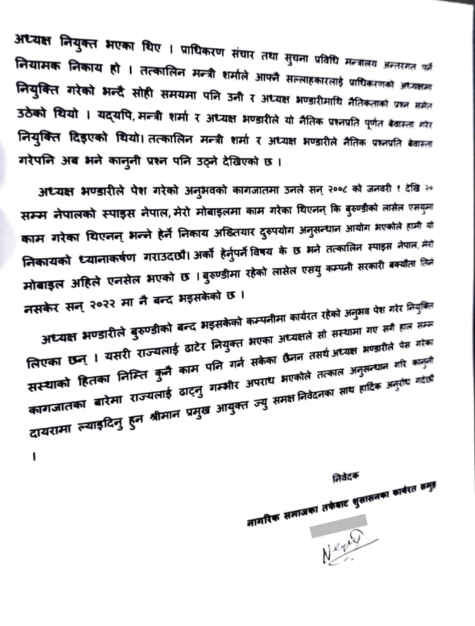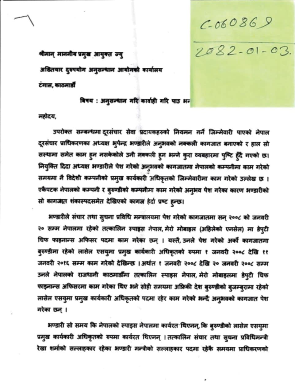 नक्कली अनुभव प्रमाणपत्रले नियुक्ति खाएको भन्दै दूरसञ्चार प्राधिकरणका अध्यक्ष विरुद्ध अख्तियारमा उजुरी
