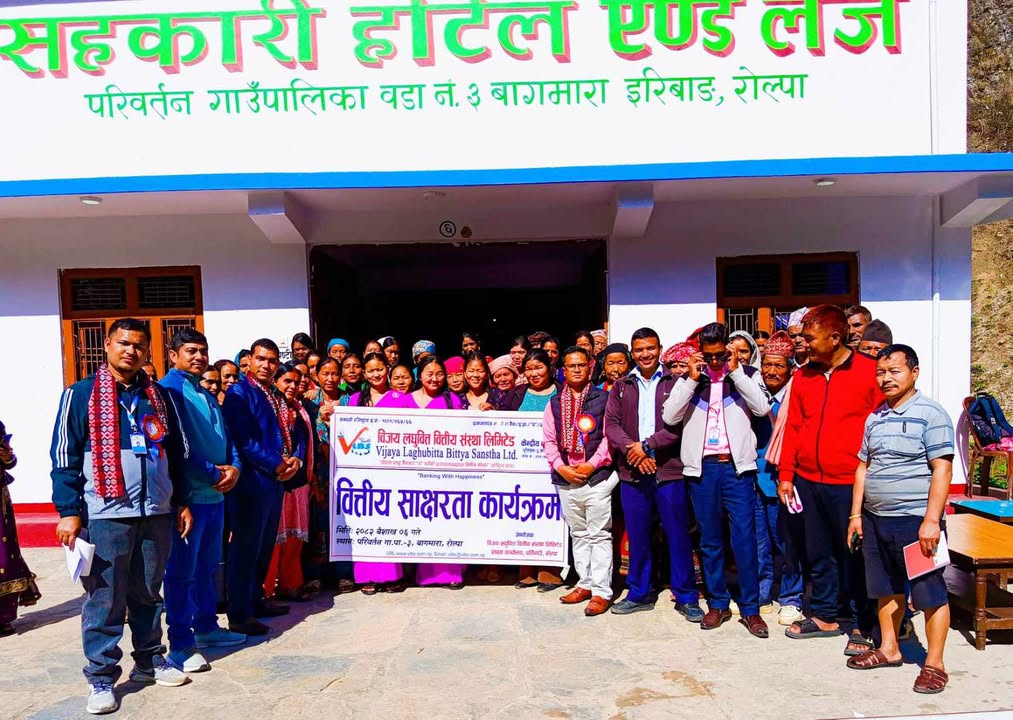 काठमाडौं । विजय लघुवित्त वित्तीय संस्था लिमिटेडले रोल्पाको परिवर्तन गाउँपालिका र रोल्पा नगरपालिका–०३ स्थित खुमेलमा वित्तीय साक्षरता कार्यक्रम सम्पन्न गरेको छ। बैशाख ६ र ८ गते दुई दिनसम्म चलेको कार्यक्रममा करीब २०० जना स्थानीय सहभागी भएका थिए।