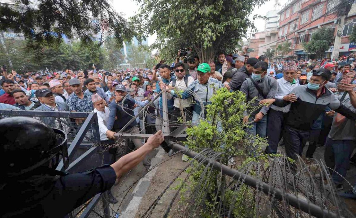 काठमाडौं । आन्दोलनरत शिक्षक र प्रहरीबीच बानेश्वरमा झडप भएको छ । विद्यालय शिक्षा ऐन जारी हुनुपर्ने माग राख्दै जारी आन्दोलनको २६ औं दिनमा शिक्षक र प्रहरीबीच धकेलाधकेल भएको हो।