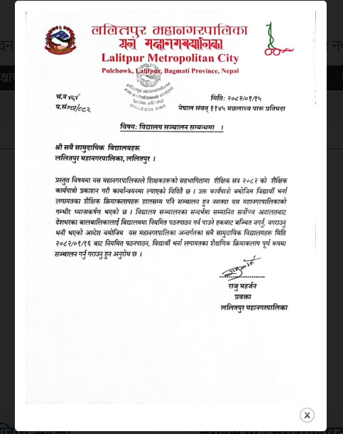 ललितपुर महानगरले सामुदायिक विद्यालय भोलिबाट सञ्चालन गर्न निर्देशन