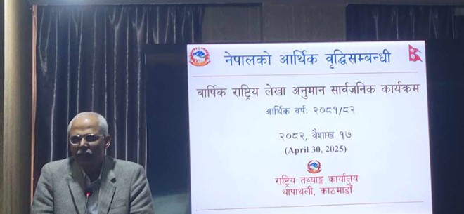 कार्यालयले बुधबार एक कार्यक्रम आयोजना गर्दै राष्ट्रिय लेखा तथ्यांकको अनुमान सार्वजनिक गरेको हो ।