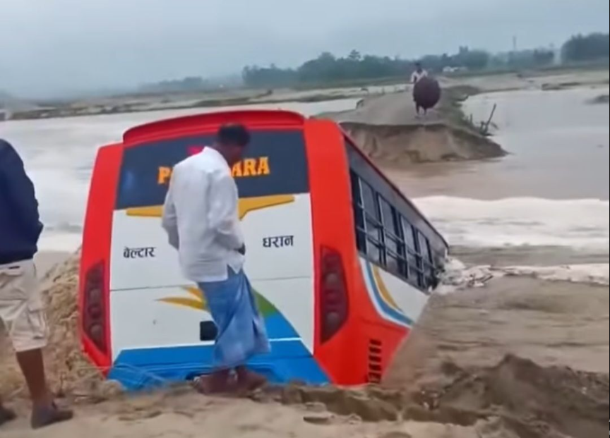 काठमाडौं । उदयपुर जिल्लाको चौदण्डीगढी नगरपालिका–५ मा रहेको सिबाई त्रियुगा खोलामा को १ ख ४७५३ नम्बरको बस खसेको छ । सोमबार साझ त्रियुगा खोलामा आएको बाढीले सडकमा प्रयोग गरिएको होमपाइप बगाउँदा बस खोलामा खसेको उदयपुर जिल्ला प्रहरीका सूचना अधिकारी तथा प्रहरी नायब उपरीक्षक केदारमान दोङले बताए ।