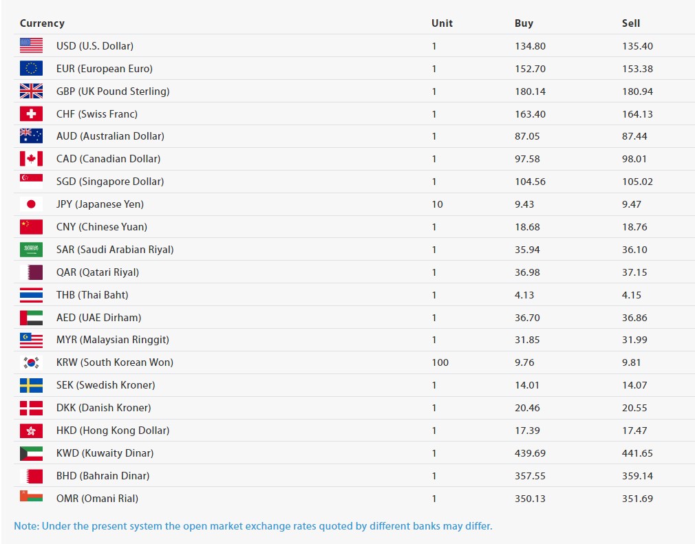 जापानी येन १० को खरीददर नौ रुपैयाँ ४३ पैसा र बिक्रीदर नौ रुपैयाँ ४७ पैसा, चिनियाँ युआन एकको खरीददर १८ रुपैयाँ ६८ पैसा र बिक्रीदर १८ रुपैयाँ ७६ पैसा, साउदी अरेबियन रियाल एकको खरीददर ३५ रुपैयाँ ९४ पैसा र बिक्रीदर ३६ रुपैयाँ १० पैसा, कतारी रियाल एकको खरीददर ३६ रुपैयाँ ९८ पैसा र बिक्रीदर ३७ रुपैयाँ १५ पैसा कायम भएको छ।