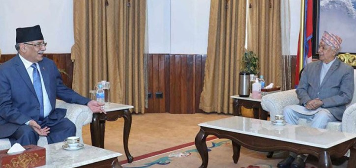 शीतलनिवासमा राष्ट्रपति पौडेल र माओवादीका अध्यक्ष प्रचण्डबीच भेट