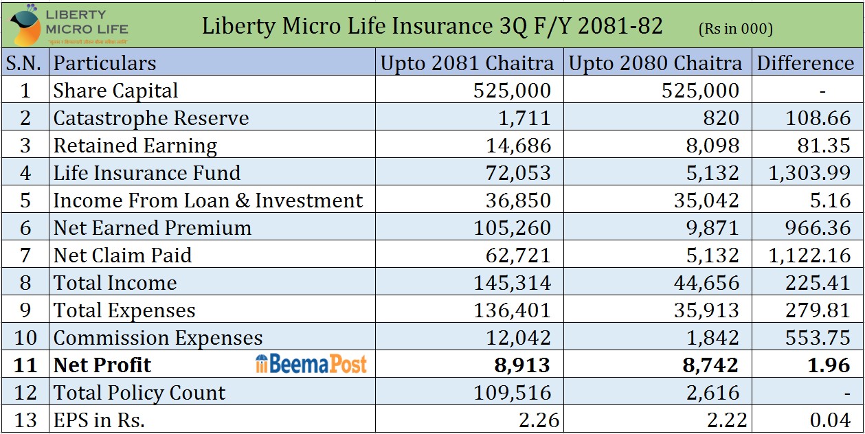 लिवर्टी माइक्रो लाइफको नाफा सामान्य बढ्यो, जीवन बीमा कोष ७ करोड २० लाख माथि
