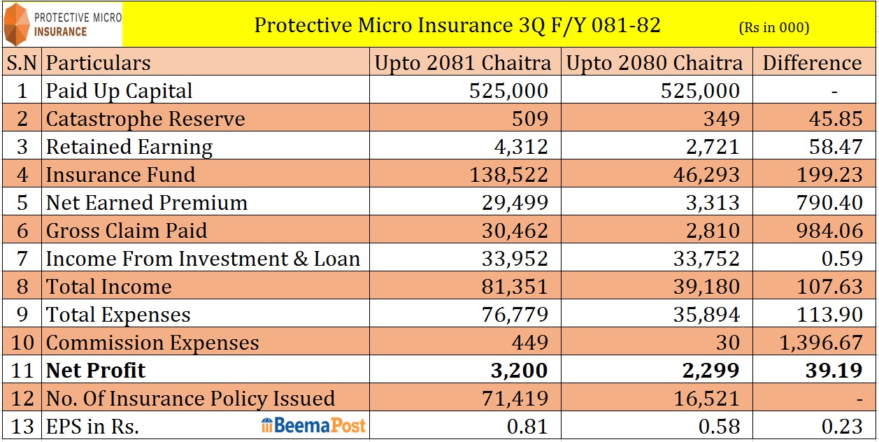 प्रोटेक्टिभ माइक्रो इन्स्योरेन्सको नाफा ३९ प्रतिशत बढ्यो