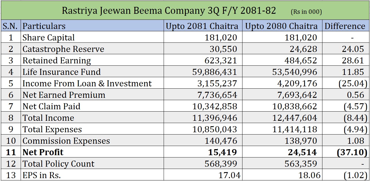 राष्ट्रिय जीवन बीमा कम्पनीको खुद नाफा १ करोड ५४ लाख, प्रतिशेयर आम्दानी कति?