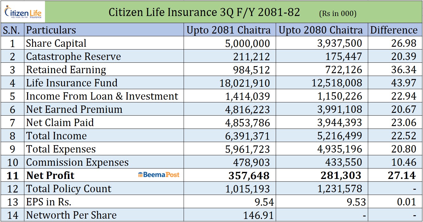 सिटिजन लाइफको वित्तीय विवरणमा लोभलाग्दो प्रगति, सबै सूचक मजबूत