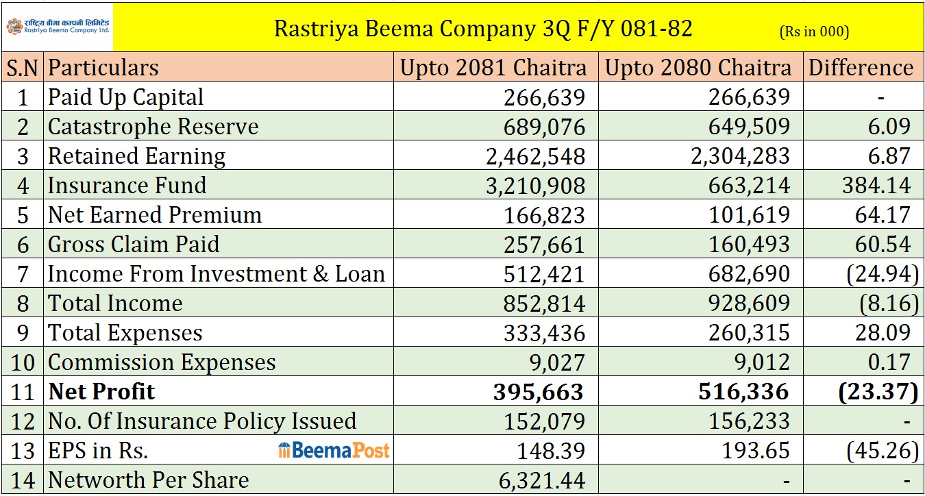 राष्ट्रिय बीमा कम्पनीको खुद बीमा शुल्क आर्जन ६४ प्रतिशत बढ्यो, अन्य सूचक कस्तो?
