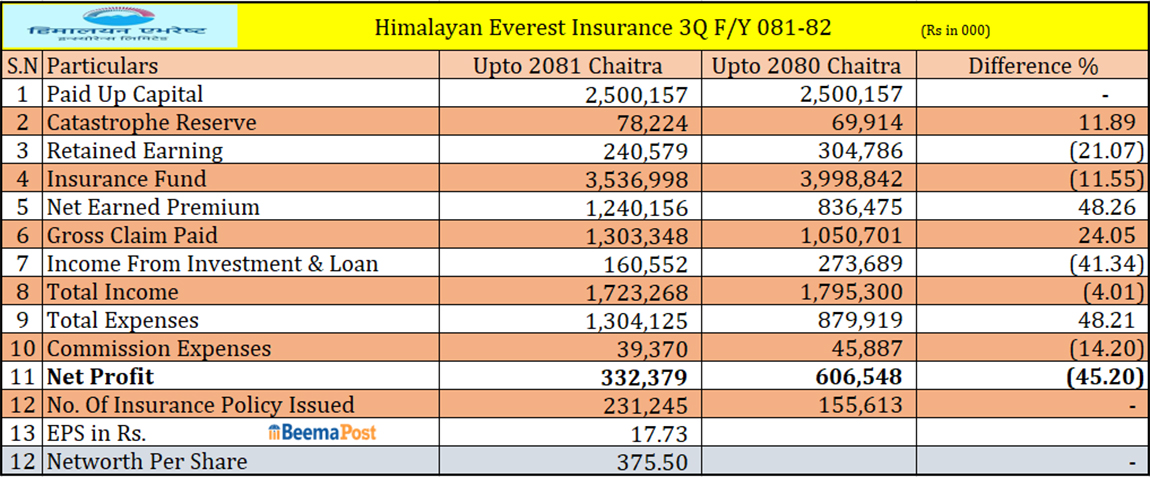 हिमालयन एभरेष्ट इन्स्योरेन्सको व्यवसाय ४८%ले बृद्धि, यस्तो छ समग्र वित्तीय अवस्था