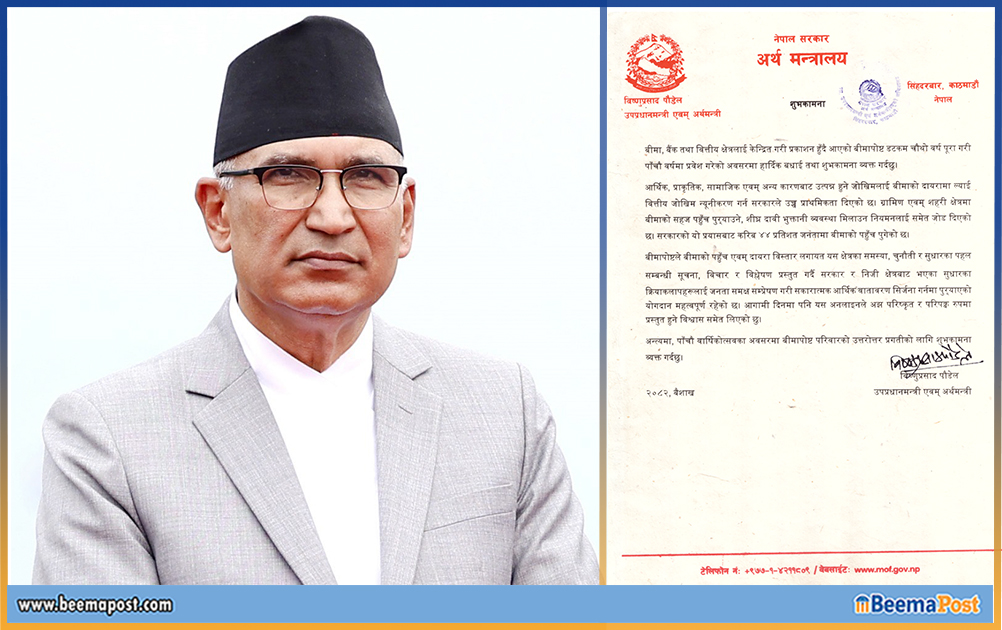 बीमा, बैंक तथा वित्तीय क्षेत्रलाई केन्द्रित गरी प्रकाशन हुँदै आएको बीमापोष्ट डटकम चौथो वर्ष पूरा गरी पाँचौ वर्षमा प्रवेश गरेको अवसरमा हार्दिक बधाई तथा शुभकामना व्यक्त गर्दछु।