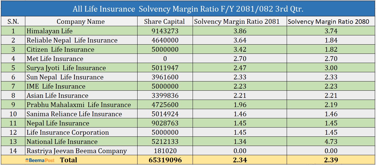 जीवन बीमा कम्पनीको सोल्भेन्सी रेसियो अनुपात २.३४, हिमालयन र रिलायबलको जोखिम धारण क्षमता उच्च