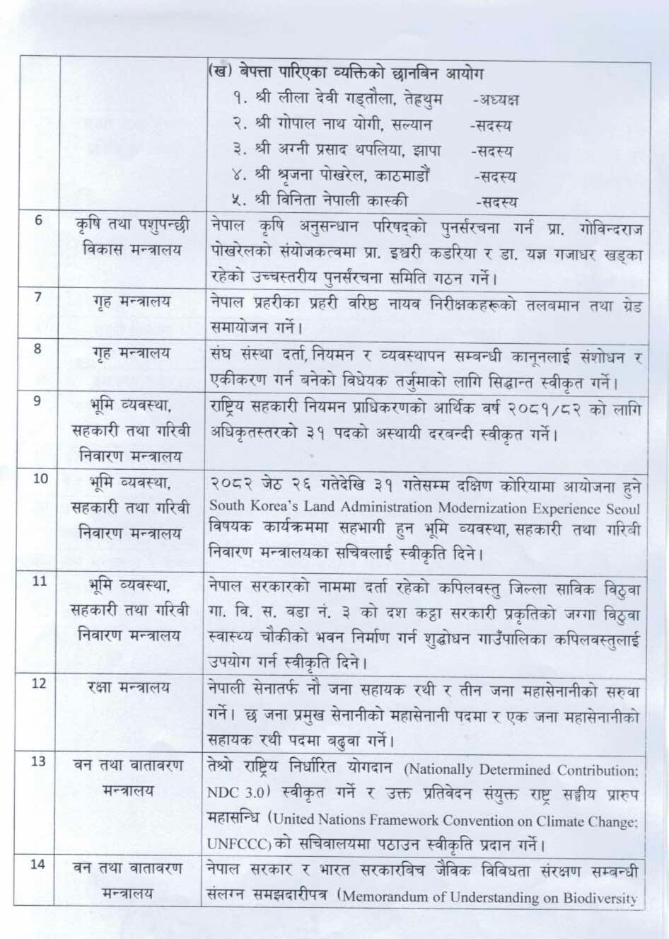 काठमाडौं । मन्त्रिपरिषदको बैठकका पछिल्ला बैठकहरु (बैशाख २५ गते र बैशाख ३१) ले लिएका निर्णयहरु सार्वजनिक भएका छन् ।