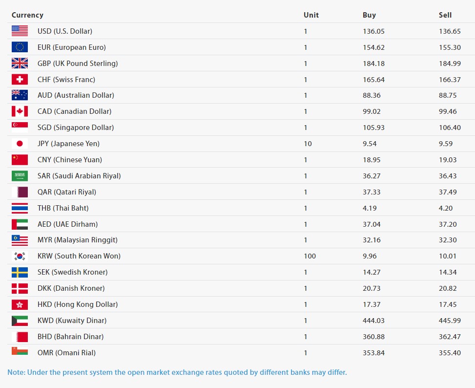 युरोपियन युरो एकको खरीददर १५४ रुपैयाँ ६२ पैसा र बिक्रीदर १५५ रुपैयाँ ३० पैसा, बेलायती पाउन्ड एकको खरीददर १८४ रुपैयाँ १८ पैसा र बिक्रीदर १८४ रुपैयाँ ९९ पैसा, स्वीस फ्र्याङ्क एकको खरीददर १६५ रुपैयाँ ६४ पैसा र बिक्रीदर १६६ रुपैयाँ ३७ पैसा निर्धारण गरिएको छ।