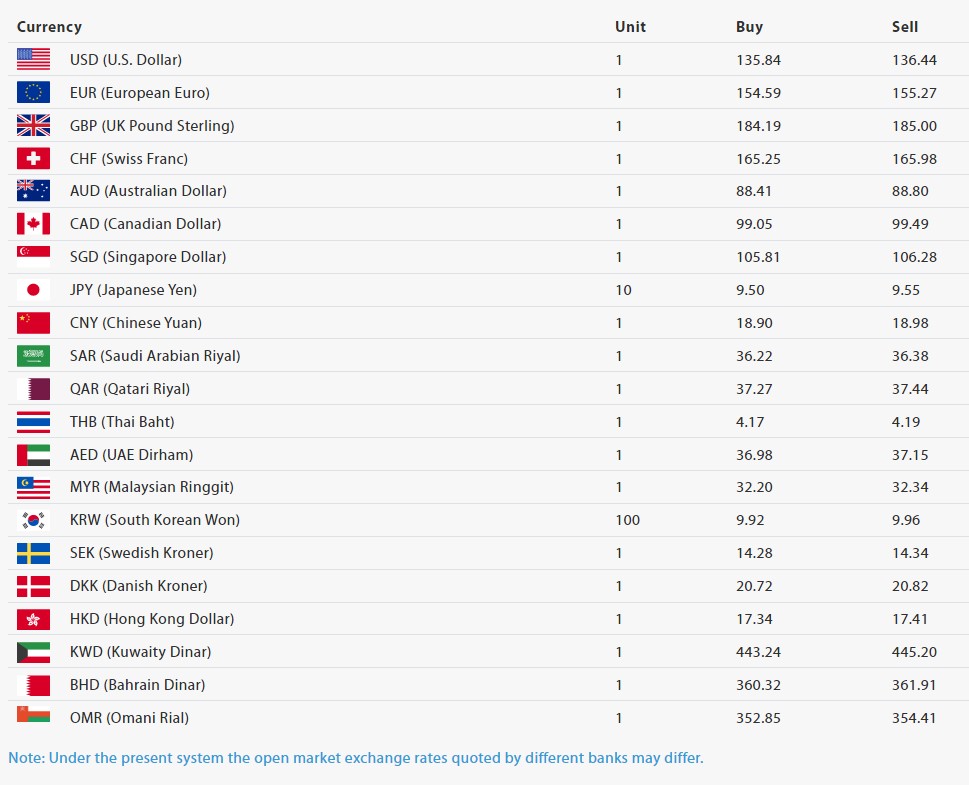 बहराइन दिनार एकको खरीददर ३६० रुपैयाँ ३२ पैसा र बिक्रीदर ३६१ रुपैयाँ ९१ पैसा, ओमानी रियाल एकको खरीददर ३५२ रुपैयाँ ८५ पैसा र बिक्रीदर ३५४ रुपैयाँ ४१ पैसा तोकिएको छ।
