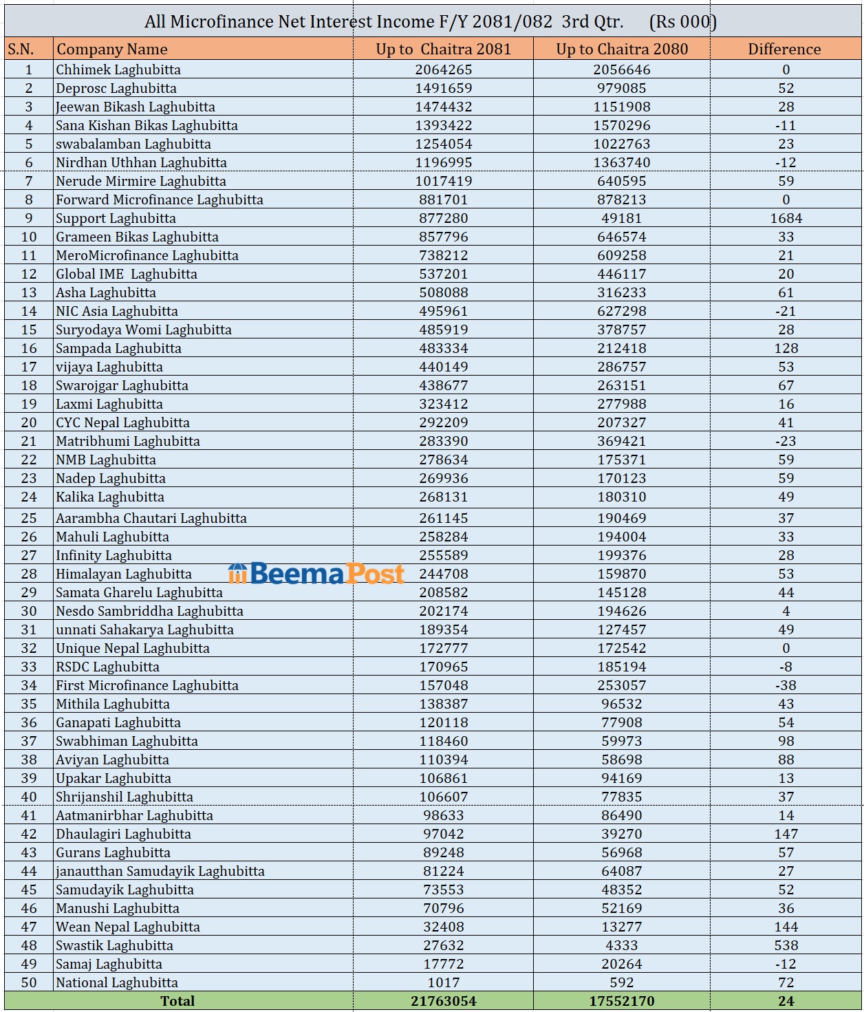 सूचीकृत ५० लघुवित्तको वित्तीय रिपोर्टः मुनाफा ४ अर्ब ६१ करोड, ब्याज आम्दानी, एनपिएल र ईपीएसमा को अब्बल ? (सूचीसहित)