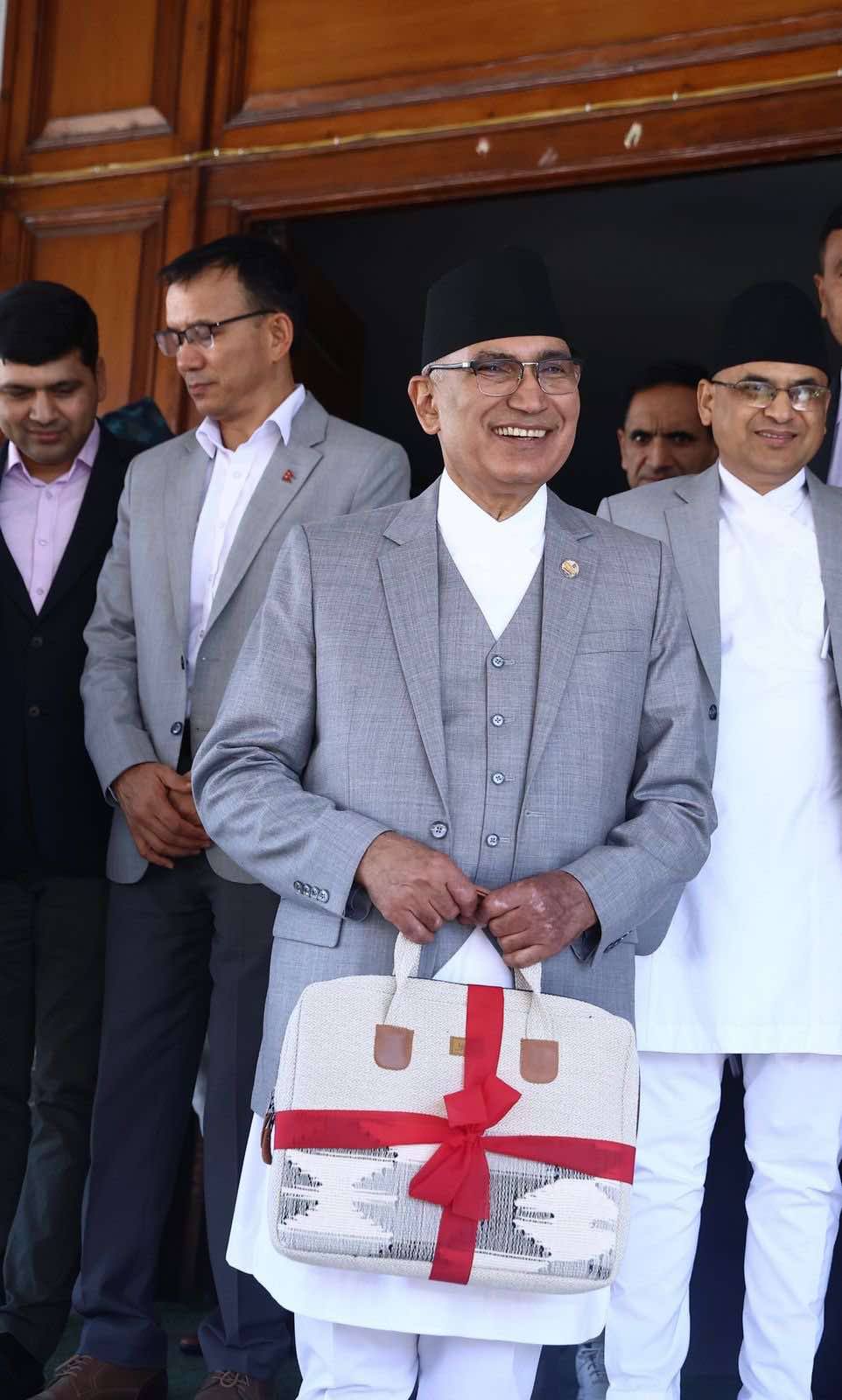 बजेटको झोला बोकेर अर्थमन्त्रालयबाट संसद भवनतर्फ निस्किए अर्थमन्त्री