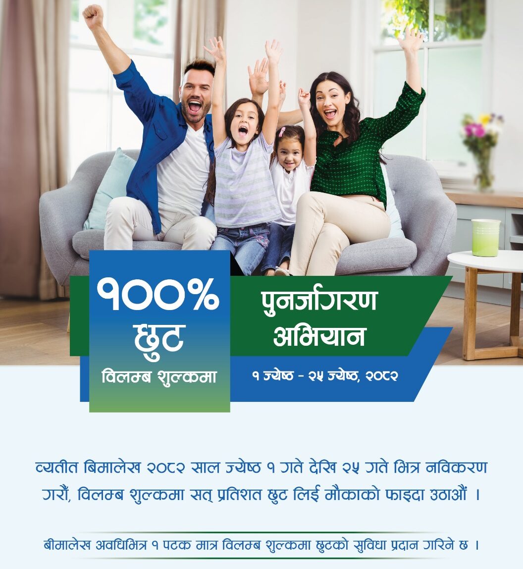 कम्पनीले प्रदान गरेको यो सुविधा सकिन अब सात दिनमात्रै बाँकी रहेको छ। जेठ २५ गतेसम्म मात्रै यो सुविधा बहाल रहने भएकाले उक्त अवधिसम्म व्यतित बीमालेख रिन्यू गरेर लाभ प्राप्त गर्न कम्पनीले आग्रह गरेको छ।