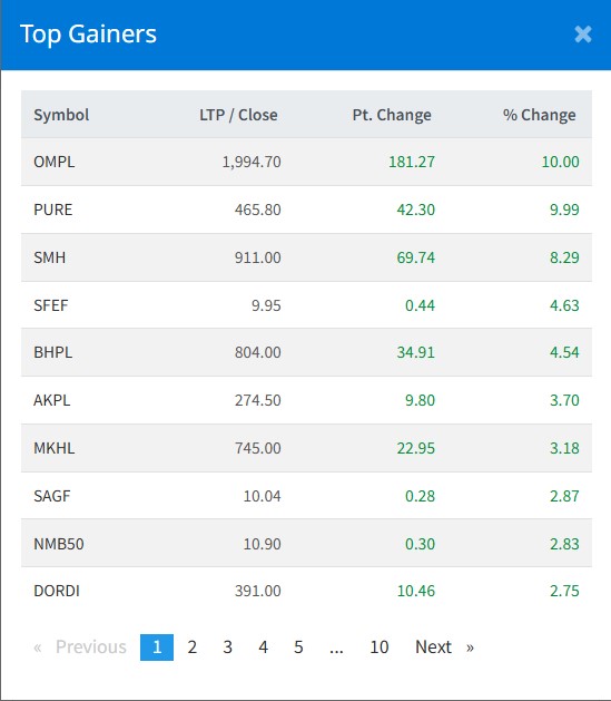 त्यस्तै, सुपरमाई हाइड्रोपावरको शेयरमूल्य ८.२९ प्रतिशत, सनराइज फोकस्ड फण्डको ४.६३ प्रतिशत, बाराही हाइड्रोपावरको ४.५४ प्रतिशत, अरुण काबेली पावरको ३.७० प्रतिशतले शेयरमूल्य बृद्धि भएको छ ।