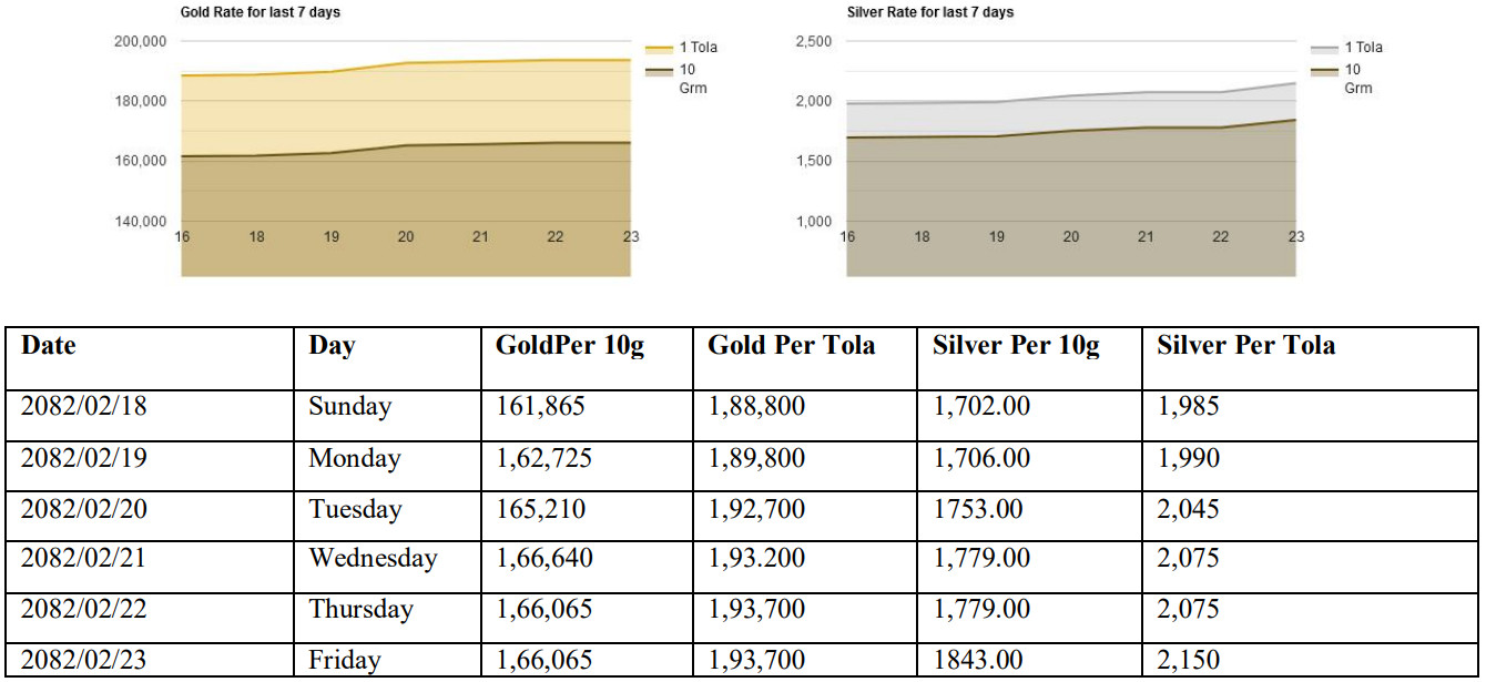 सुन, चाँदीको मूल्य यो साता तोलामा कतिले बढ्यो ?