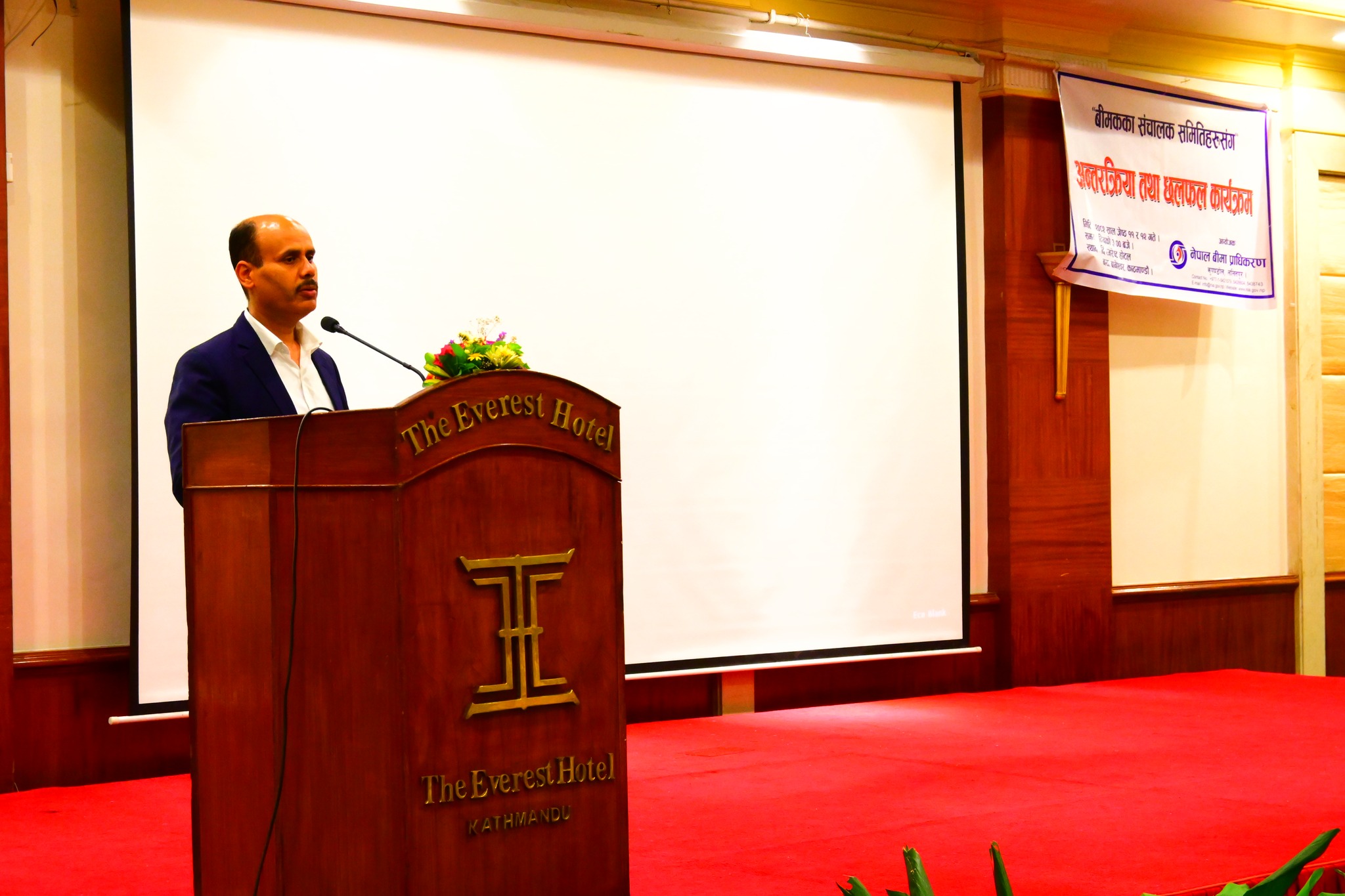 कार्यक्रममा स्वागत मन्तव्य व्यक्त गर्नुहुँदै नेपाल बीमा प्राधिकरणका कार्यकारी निर्देशक सुशीलदेव सुवेदीले बीमा उद्योगलाई सुव्यवस्थित रूपमा अगाडि बढाउन, बीमितको हित रक्षा गर्न र बीमा क्षेत्रमा देखिएका समस्याहरू समाधान गर्नका लागि प्राधिकरणले नियमकीय भूमिका सँगसँगै सहयोगीको भूमिका समेत निर्वाह गर्दै आएको बताउनुभयो ।