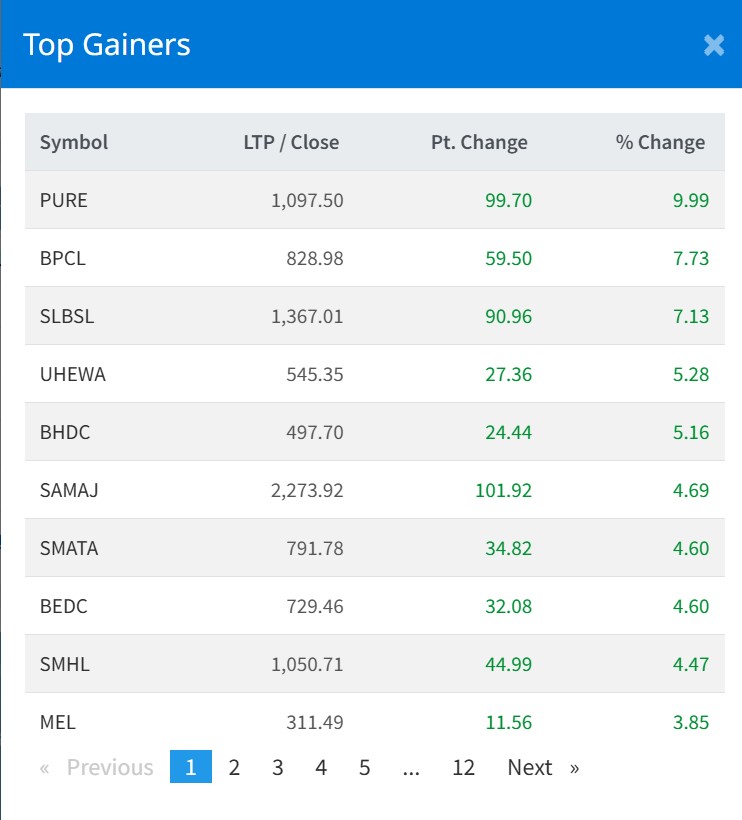 त्यस्तै, बुटवल पावर कम्पनी, सामुदायिक लघुवित्त, अप्पर हेवाखोला हाइड्रोपावर, बिन्द्यावासीनी हाइड्रोपावर लगायतका कम्पनीको शेयरमूल्य सर्वाधिक बृद्धि भएको छ ।