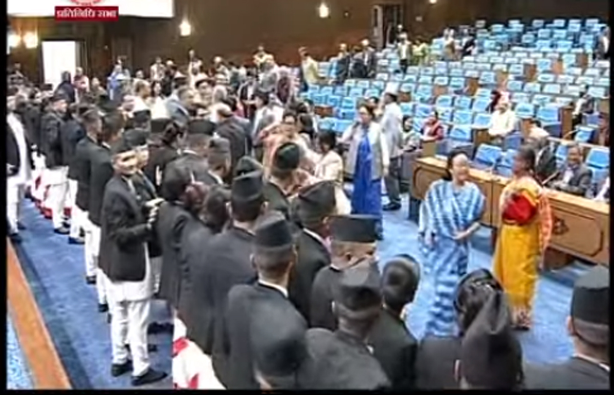 सभामुख देवराज घिमिरेले संसद बैठक सुरु भएको जानकारी गराएलगत्तै रास्वपा सांसदहरु आआफ्नो ठाउँबाट उठेर बैठक अवरुद्ध गरेका हुन् ।