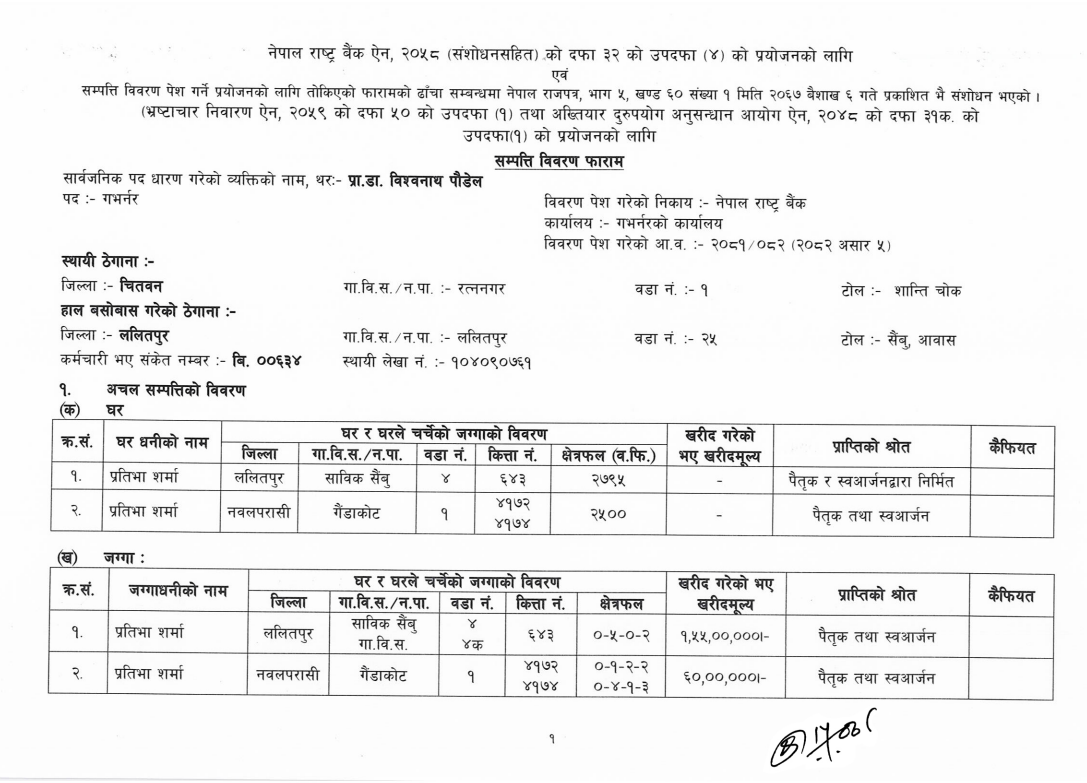 गभर्नरको सम्पत्तिः ४५ लाखको सुन, १५ लाखको हिरा, सूचीकृत कम्पनीहरुमा लगानी धेरै, कुन बैंकमा कति ?