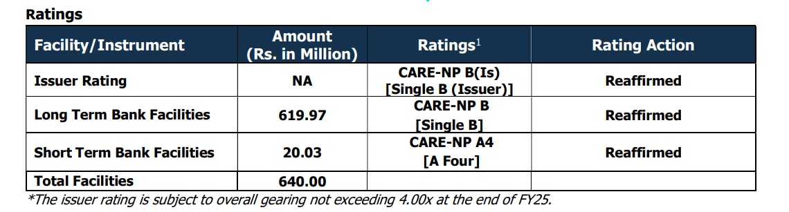 कम्पनीले ६४ करोड रुपैयाँ ऋणको लागि रेटिङ गराएको छ । रेटिङ एजेन्सी केयर रेटिङ नेपालले अल्पकालीन ऋणका लागि केयर एनपी ए फोर को रेटिङ प्रदान गरेको छ भने दीर्घकालिन ऋणका लागि केयर एनपी बी रेटिङ प्रदान गरेको छ ।