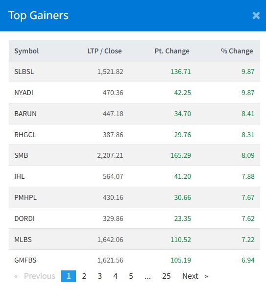 आज २१७ वटा कम्पनीको शेयरमूल्यमा हरियाली छाएको छ । जसमा सामुदायिक लघुवित्त र न्यादी हाइड्रोपावरको शेयरमूल्य ९.८७ प्रतिशतले सर्वाधिक बृद्धि भएको छ ।