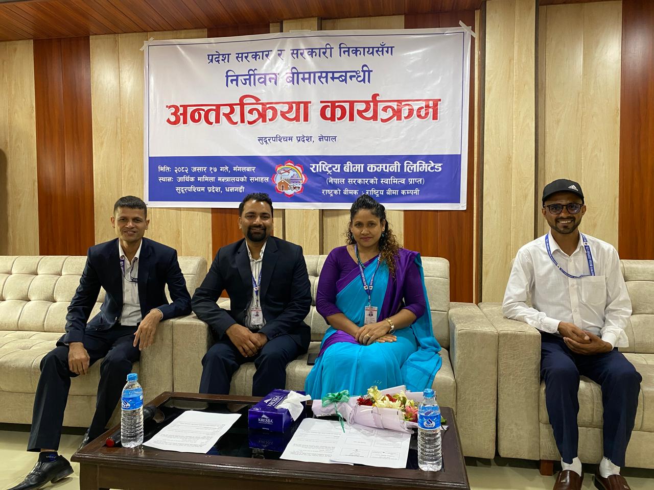राष्ट्रिय बीमा कम्पनीले आव २०८१–०८२ को कार्यक्रम बमोजिम पाँच वटा प्रदेशमा प्रदेश सरकार र प्रादेशिक सरकारी निकायसँग निर्जिवन बीमा सम्बन्धि अन्तरक्रियात्मक कार्यक्रमहरु सम्पन्न गरिसकेको छ ।
