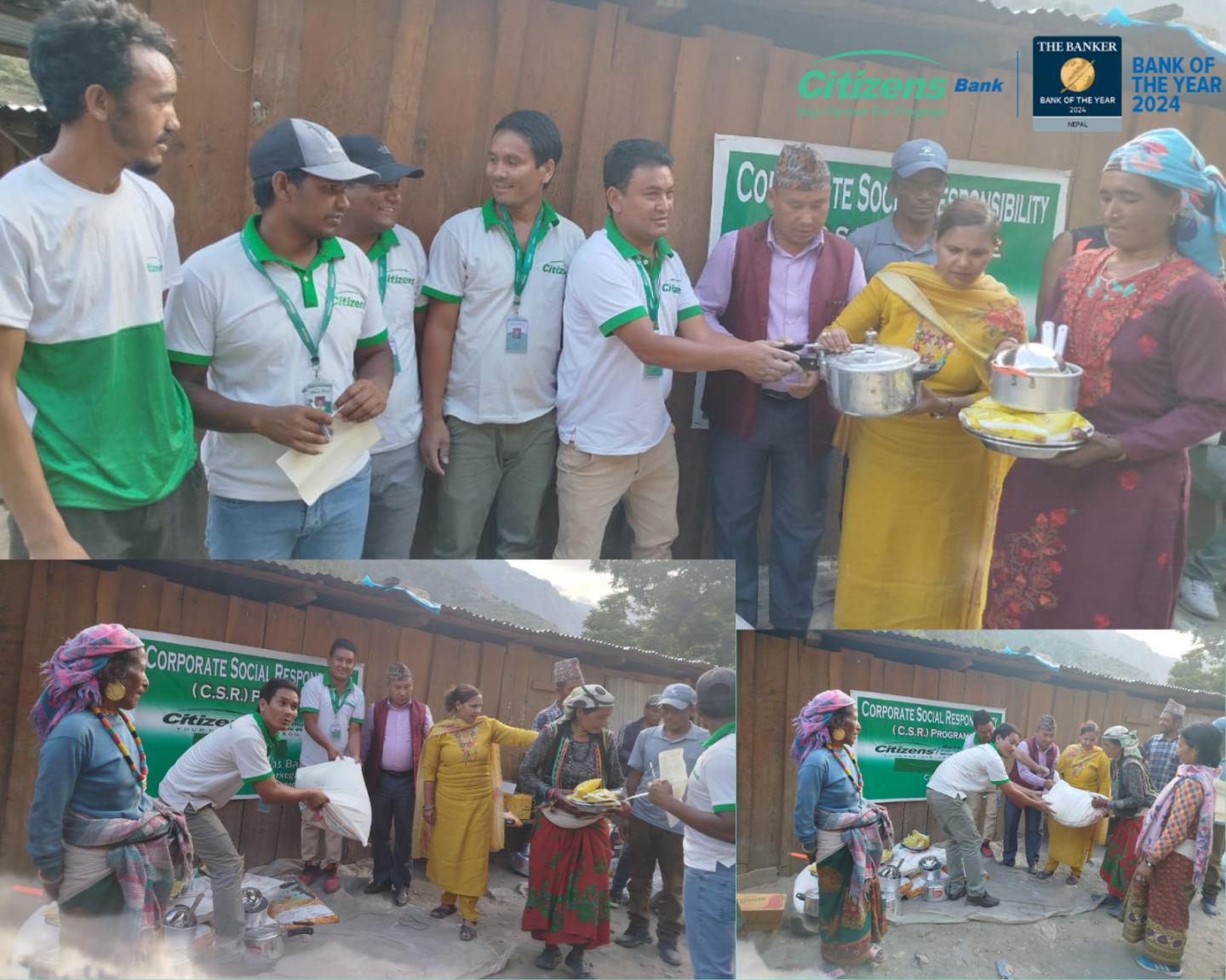 आगलागीपीडितको दुःखमा साथ: सिटिजन्स बैंकद्वारा हुम्लाका परिवारलाई खाद्यान्न र लत्ताकपडा वितरण