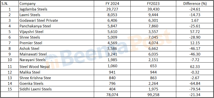 १५ स्टील उद्योगको व्यापारमा २१ अर्बको गिरावट, ११ कम्पनी अझै अर्ब क्लबमा, कुनको आम्दानी कति?