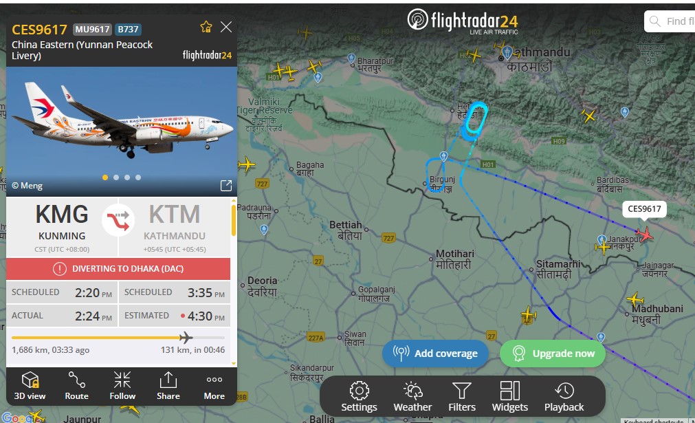 अहिले उक्त जहाज काठमाडौँमा अवतरण हुन नसकेपछि ‘ढाका’ का लागि गएको छ ।