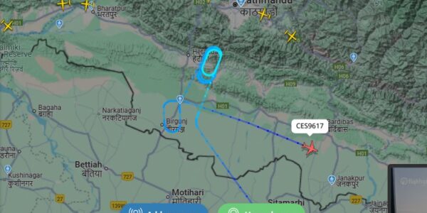 चिनबाट आएको जहाज काठमाडौंमा अवतरण हुन नसक्दा आकाशमै फन्का मार्दै