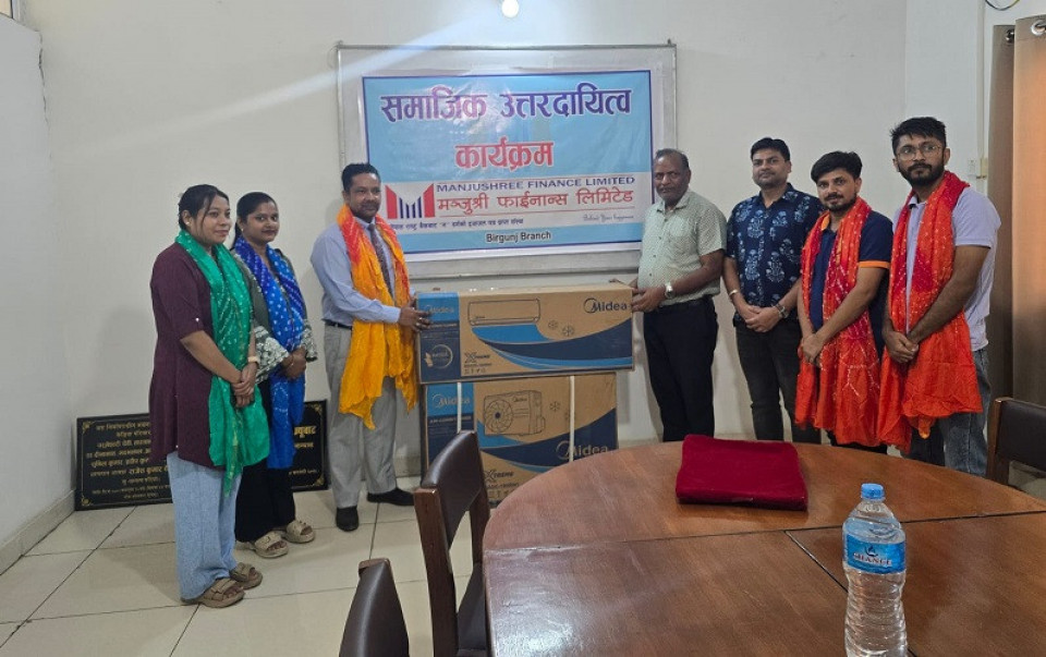 काठमाण्डौं । मन्जुश्री फाईनान्स लिमिटेडले विरगञ्ज शाखा मार्फत आरएमः केडिया आँखा अस्पताल, विरगञ्जलाई दुई थान एसी सहयोग स्वरुप हस्तान्तरण गरेको छ । कम्पनीले कर्पोरेट सामाजिक दायित्व अन्तर्गत उक्त सहयोग हस्तान्तरण गरेको हो ।