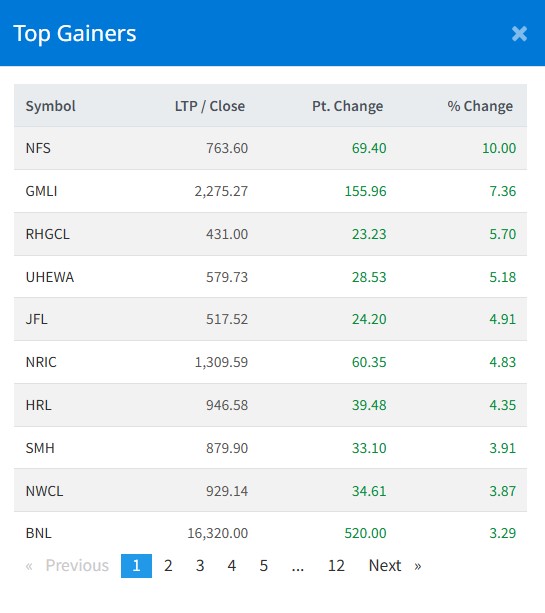 त्यस्तै, राप्ती हाइड्रो एण्ड जनरलको ५.७० प्रतिशत, अप्पर हेवाखोला हाइड्रोपावरको ५.१८ प्रतिशत, जानकी फाइनान्सको ४.९१ प्रतिशतले शेयरमूल्य बृद्धि भएको छ ।