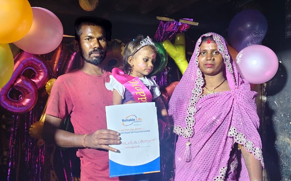 छोरोको पास्नी र छोरीको जन्मदिनमा रिलायबल लाइफको बीमा पोलिसी उपहार