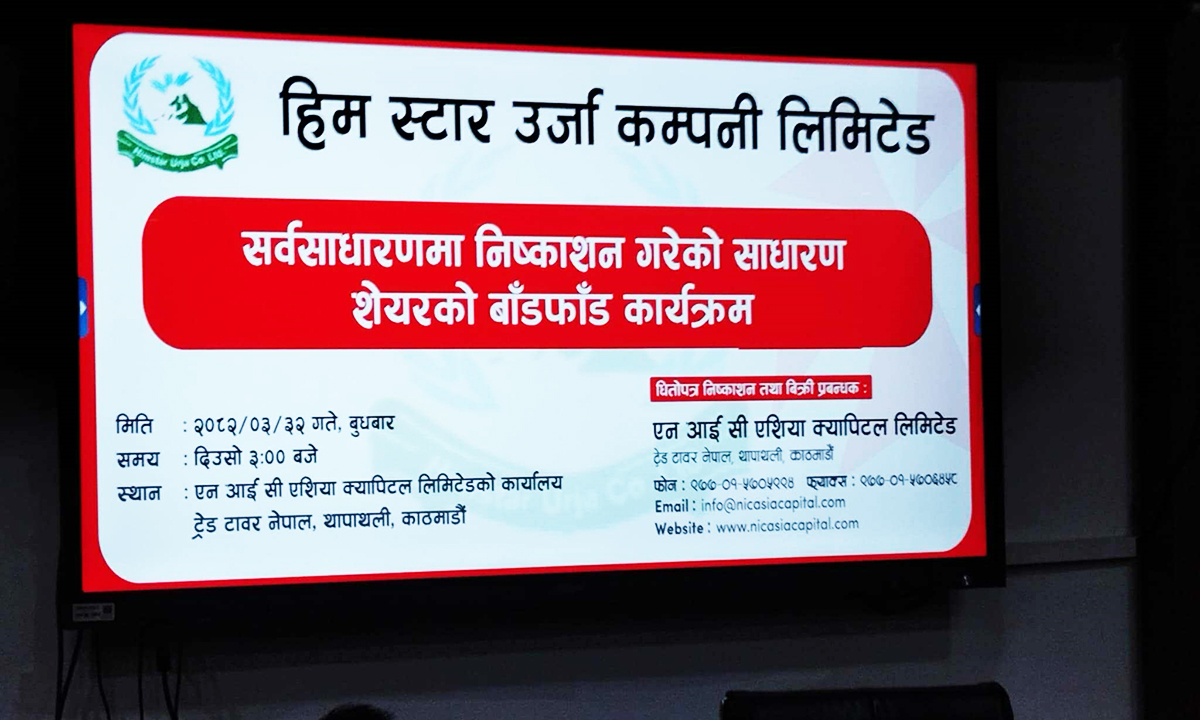 हिम स्टार उर्जाको आइपीओ बाँडफाँट, ७७ हजार ३९७ जनाले पाए शेयर
