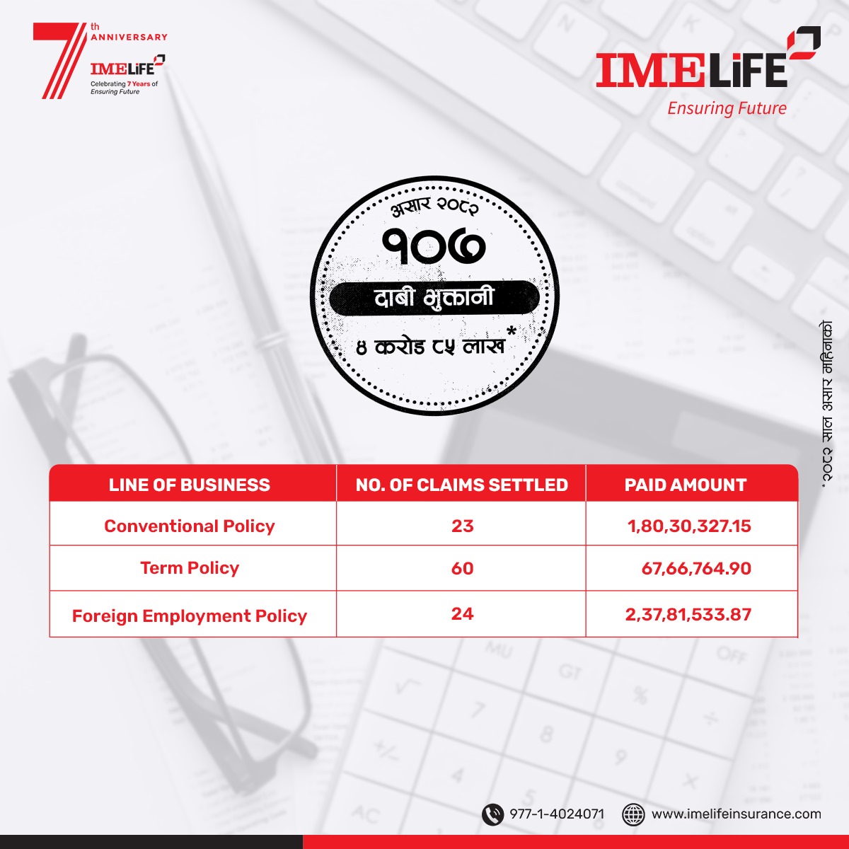 असारमा आइएमई लाइफद्वारा १०७ बीमितलाई दाबी भुक्तानी, ४ करोड ८५ लाख रकम वितरण
