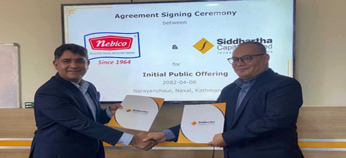नेबिको लिमिटेडका तर्फबाट अध्यक्ष राज बहादुर सिंह र सिद्धार्थ क्यापिटल लिमिटेडको तर्फबाट प्रमुख कार्यकारी अधिकृत सन्दिप कार्कीले सम्झौतापत्रमा हस्ताक्षर गरेका छन् । नेबिको लिमिटेड सन् १९६४ मा स्थापना भएको नेपालकै पुरानो र प्रख्यात खाद्य उत्पादन कम्पनी हो ।