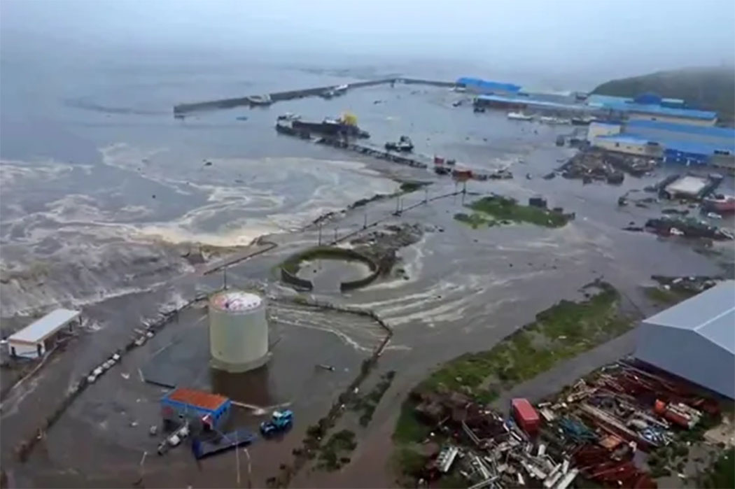 रूसी आपतकालीन मन्त्रालयका अनुसार साखालिन क्षेत्रमा पर्ने सिभेरो–कुरिल्स्क नामक सहरमा पाँच मिटर (१६.४ फिट) उचाइका छाल पुगेका छन्। पानी सहरभित्र पस्दा दुई हजार भन्दा बढी नागरिकलाई सुरक्षित स्थानमा सारिएको छ। उत्तर कुरिल जिल्लाभरि आपतकालीन अवस्था घोषणा गरिएको छ।